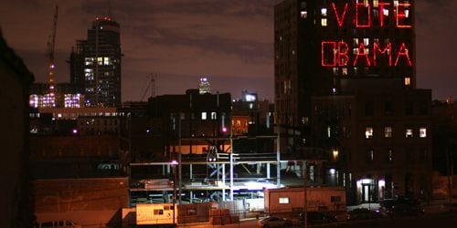 In form as well as theme, then, 11/4/08 does offer another way to think about history, one that is unfixed and overtly subjective, a collection of impressions and events, self-performances and declarations. As such, the documentary exposes the fiction of structure, the imposition of cues and form, cause and effect, character arcs and resolutions. Instead, 11/4/08 begins.