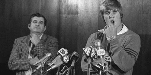 And so today, as the 2013 NFL draft gets underway, the story of that class three decades ago is instructive. Or, more accurately, the several versions of stories about it are instructive. And as these are assembled in 30 for 30: Elway to Marino, they form a beginning and an end, in the sense that then commissioner Pete Rozelle read names, draftees and their families posed for television cameras as they took their phone calls, and commentators commented on these names and took their own poses. It’s striking now, watching this now ancient-seeming footage (Elway did once look like the “surfer boy” his detractors claimed he was), that the show was so elaborate and so stagey, that before cell phones such efforts were made to set up selections and reactions so they looked — for TV — to be immediate and authentic.